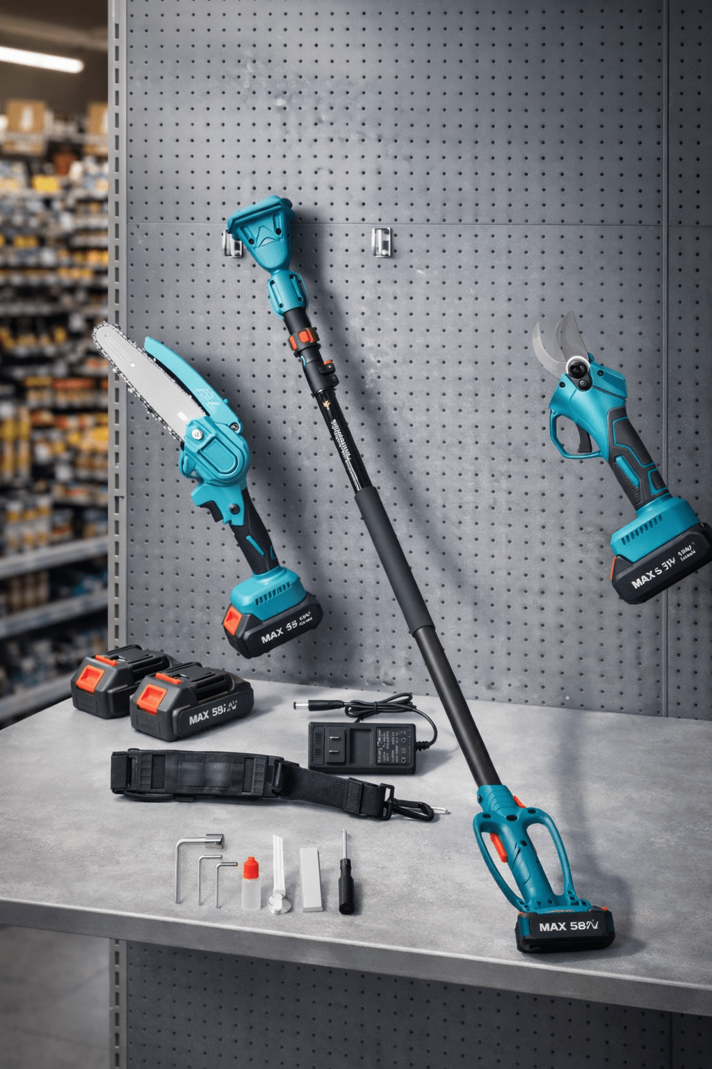 SET Aku Makaze & Aku Pila Makita sa Teleskopom – Savršen alat za orezivanje voćnjaka, vinograda i održavanje vrta. Pruža veliku snagu i preciznost, uz domet do 3 m i dugotrajne 48V baterije!