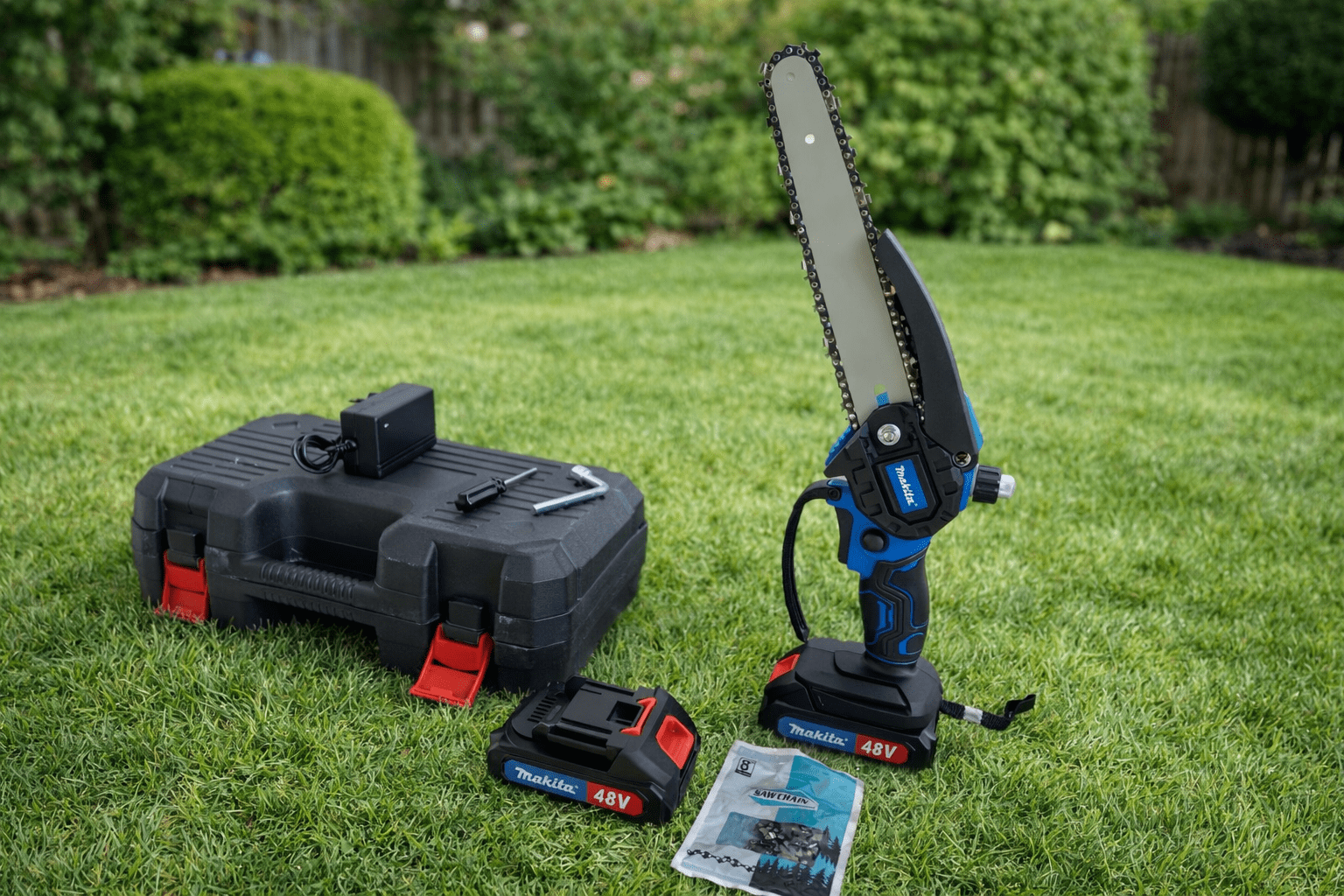Lagani i snažan aku model Makita pile s dva lanca i sistemom automatskog podmazivanja. Dužina mača 20 cm, idealno za rad na otvorenom i u radionici.